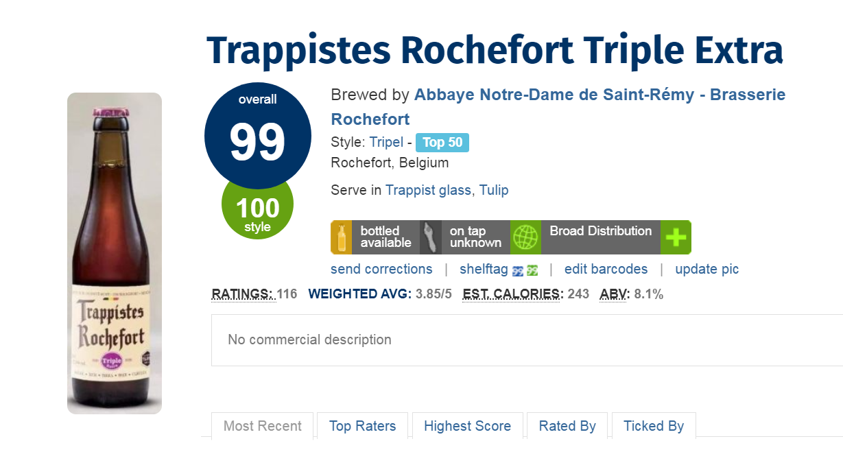 Trappistes Rochefort Extra Triple (Ratebeer: 99pts) (330ml x 1)